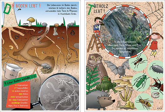 Ausstellung-Wald-und-Boden_articleDëss Ausstellung ass perfekt gëeegent fir Kanner aus dem Fondamental a soll hinnen di zwee Themen Buedem a Bësch mi no bréngen. D’Ausstellung kann op engem Support aus Stoff bei der EBL ausgeléint ginn oder awer an digitaler Form op 2 CD’e kaaf ginn. Béid CD’e goufe spezifesch un de Léierstoff vun den Primärschoulen zougeschnidden. Daat ganzt Material ka fräi geprint, multiplizéiert, vergréissert an opgehaangen, awer nët un Drëtt weidergereecht ginn. Och d’Kopéiere vun den CD’en ass nët erlaabt.
